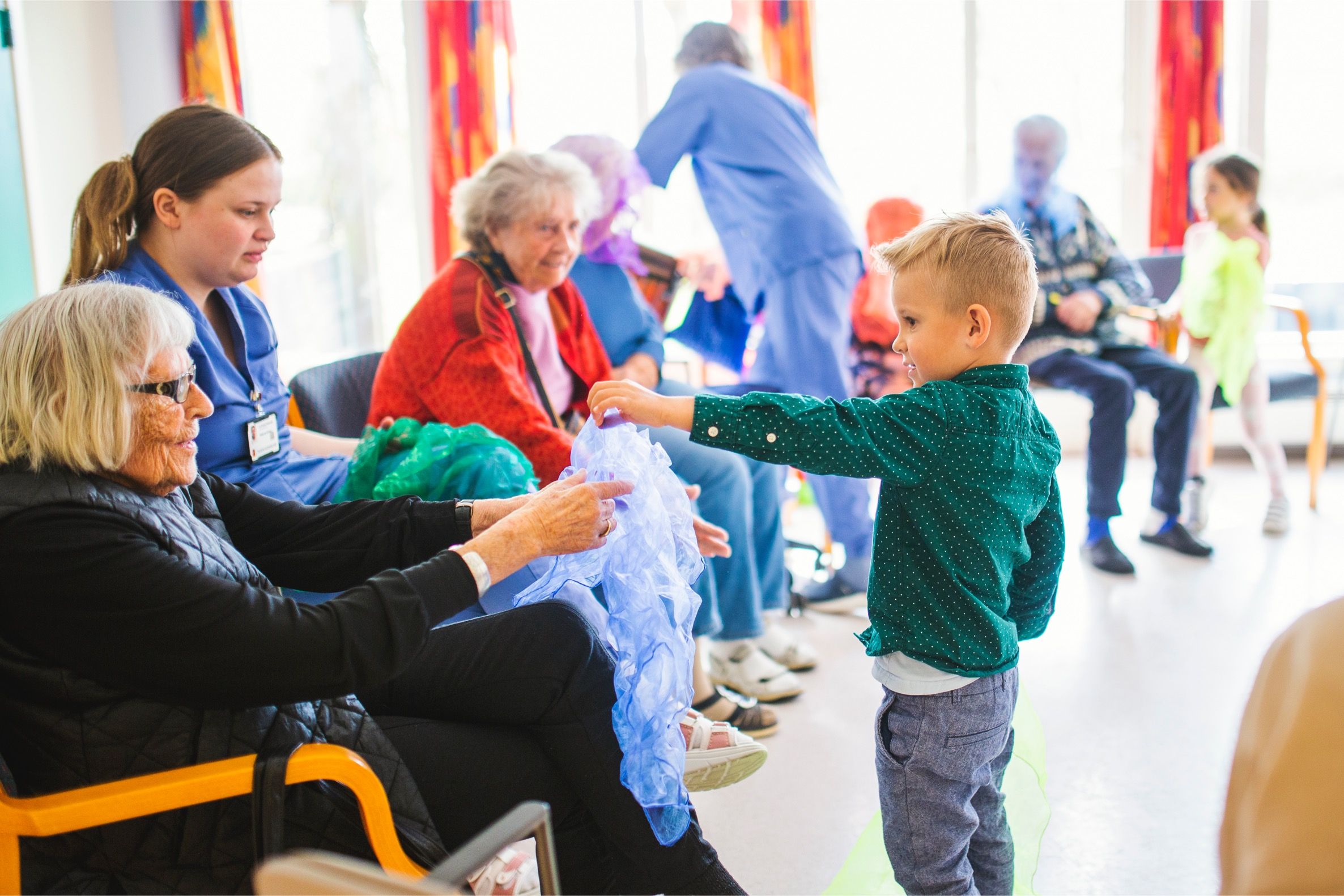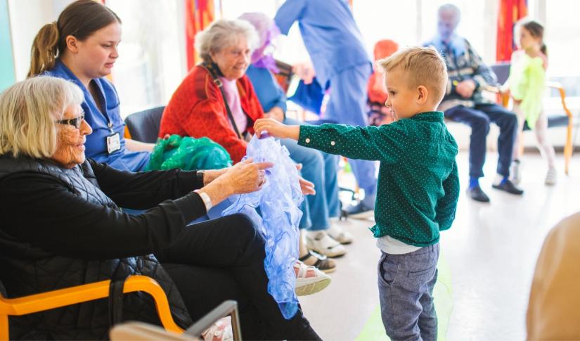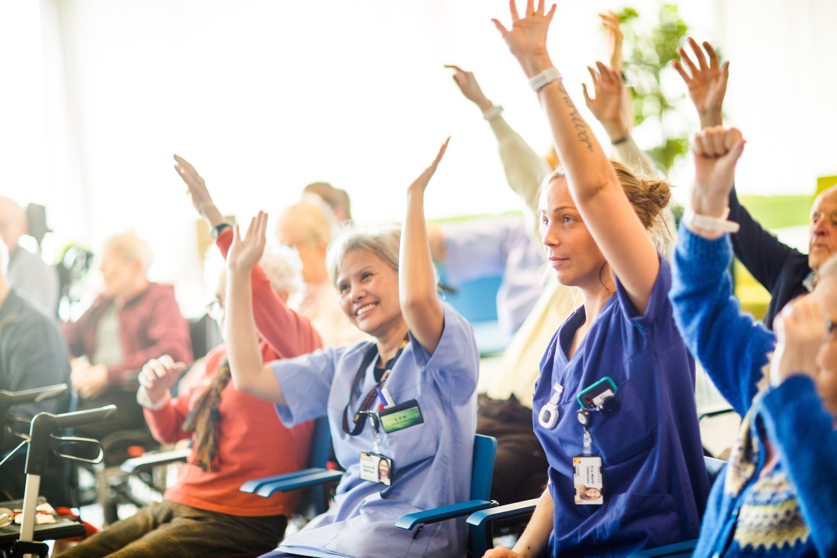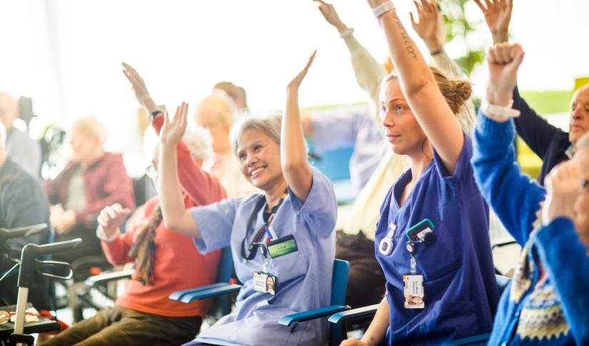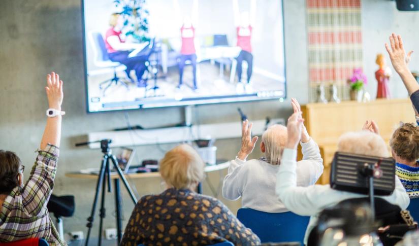 Sang, trim og dans ledet fra skjerm. Plasser dere i en halvsirkel og syng med!